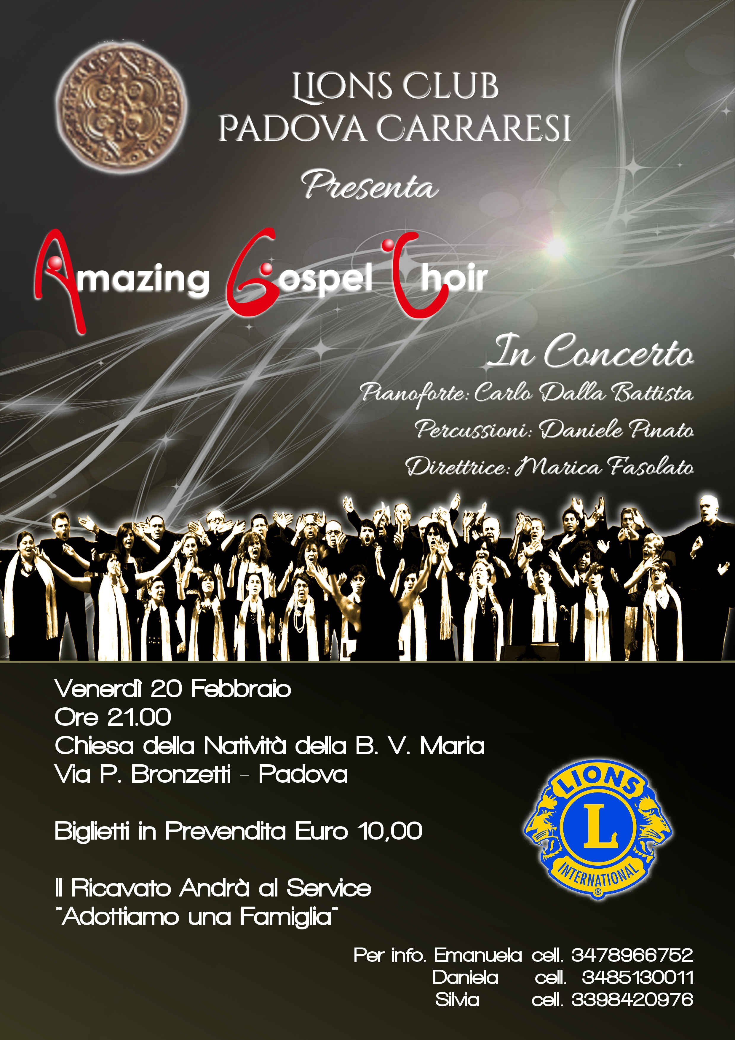 Il Lions Club è sempre stato un nostro grande sostenitore, ed anche in questa occasione non si smentisce, grazie alla sezione Lions Club Padova Carraresi, ed alla sua presidente, la gentilissima Emanuela De’ Saraca.